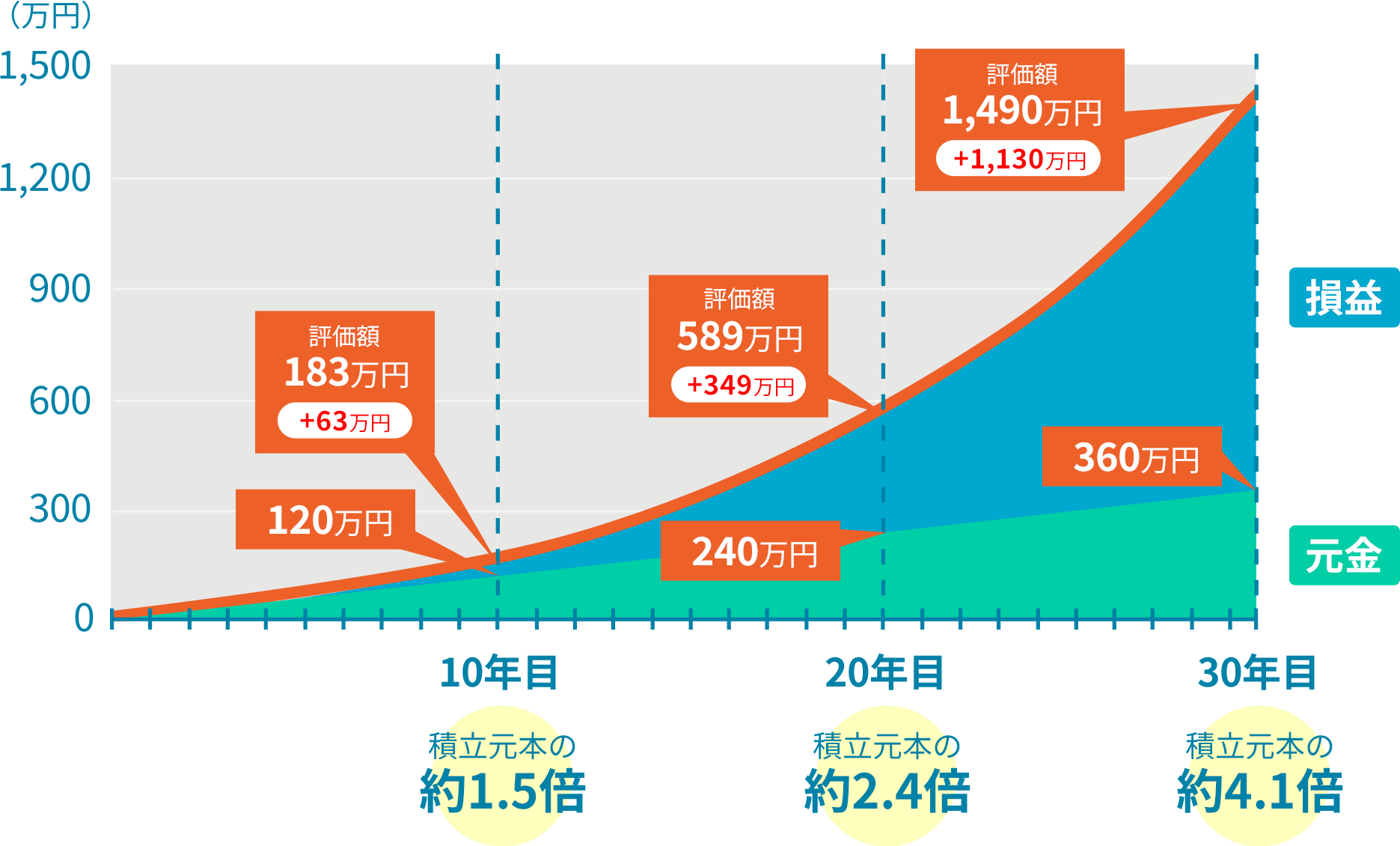 1 万円からでも、運用期間が長期になるほど大きな力になるでしょう。