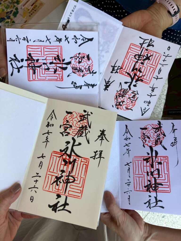 写真は、蛇窪神社と、巡り歩いた思い出の御朱印(大宮氷川神社)の一部です。美しい意匠を凝らした御朱印に触れるたび、清々しい気持ちで一年を過ごすことができました。